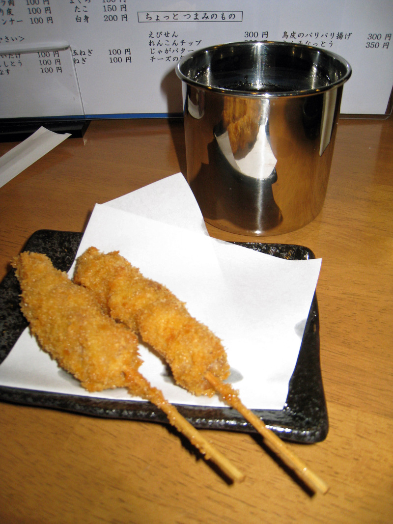 ↑揚げたての串揚げです。オリジナルソースにつけて まいう~